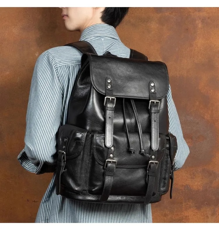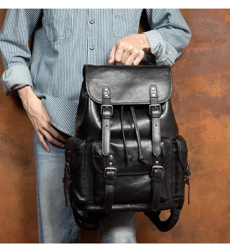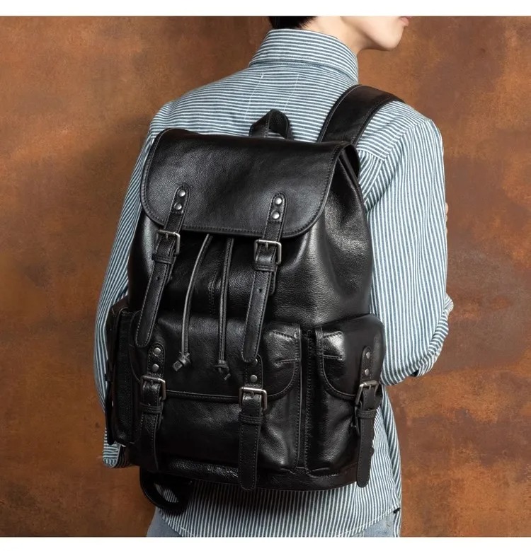 This genuine leather backpack is a versatile, multi-purpose bag designed for everyday use,