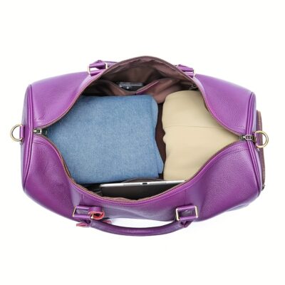 This leather duffle bag is a spacious, travel-ready bag designed for both short trips and everyday use,